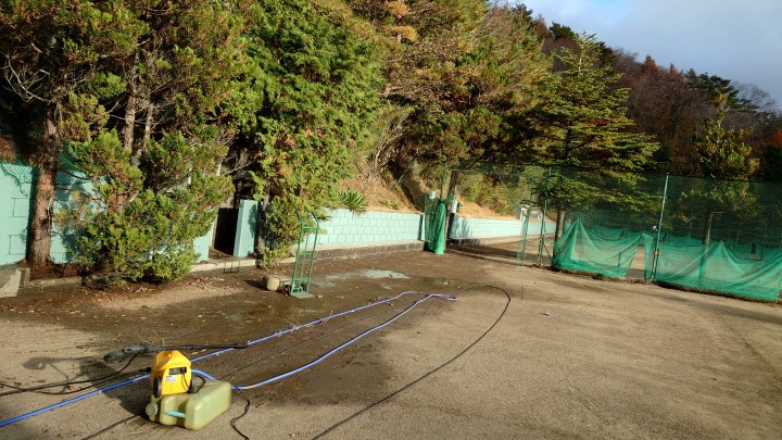 今日はテニスコートの壁下側に2回目の塗装しました。かなり色が濃くなりましたね。この後は冬支度もあるので、時間と天候を見ながら残りの部分を塗装したいと思います。