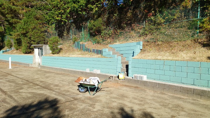 この秋にテニスコートの壁を塗装していましたが、今年の作業分は今日で塗り終わりました。かなりきれいになりました。来年は、下の部分を仕上げる予定です。