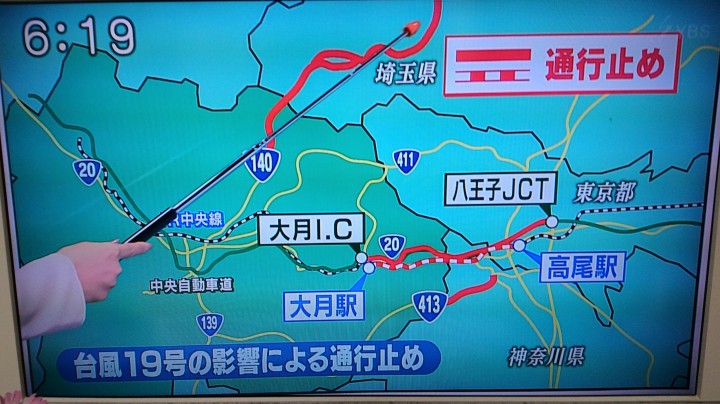 中央道はいまだ通行止めです。通行止め解除は数日後の予定