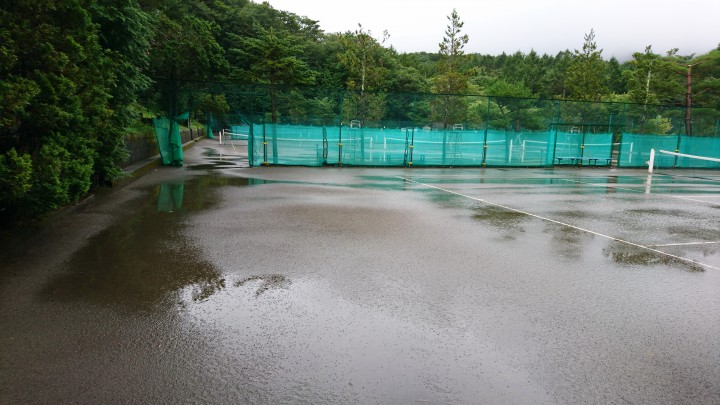 午前中はいい天気でしたが、午後2時になると突然豪雨となってテニスコートがご覧のように、プール状態となってしまいました。雨が降った時間はわずか10分程度でしたが、すごい降りでした。9月は台風シーズンでもあるので、雨には注意したいです。雨上がりは再び晴れ間が見えました。最高気温26℃、最低18℃