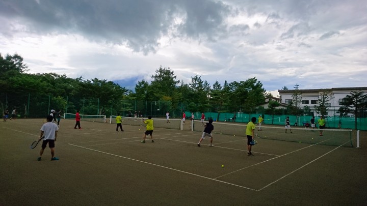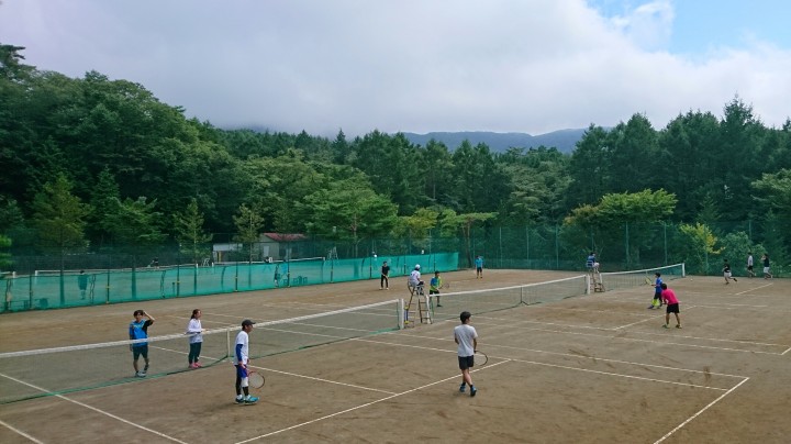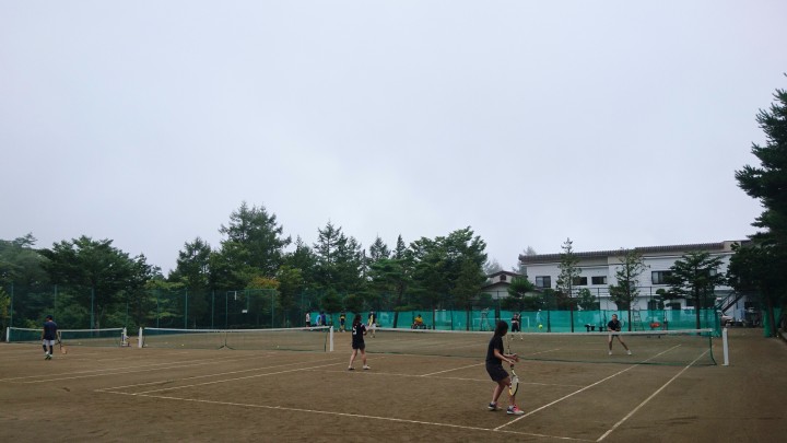 28日からお泊りの硬式庭球部様は、4日目の今日は試合に汗を流していました。どのコートも白熱した試合で、気合いが入っていました。明日は山中湖合宿最終日です。頑張ってください。今日の山中湖は曇り時々晴れ、最高27℃最低19℃19/08/31