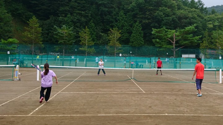 宿泊中のOTC様は、恒例の「SUMMER CUMP OTCかっぷ」を開催しました。各コートで熱い戦いが見られました。今日の山中湖は未明に雨が降りましたが日中は曇り時々晴れ、最高気温27℃、テニスをするには暑すぎずにいい環境だったと思います。残り2日、楽しい思い出を作って下さいね。