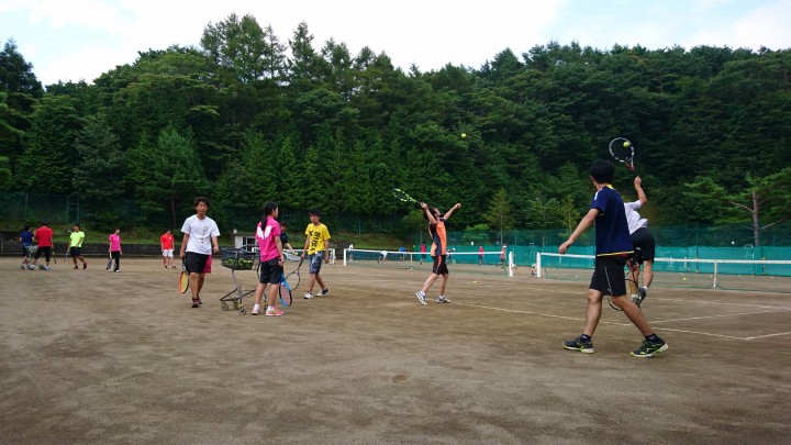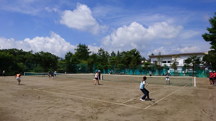 合宿6日目のOTC様、今日の元気にテニスを楽しんでいます。