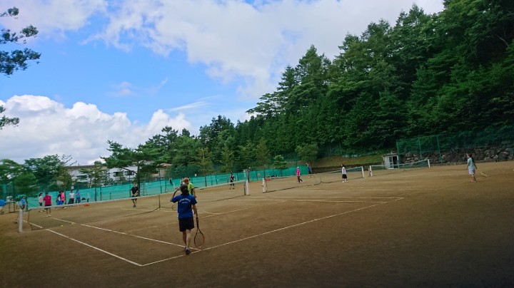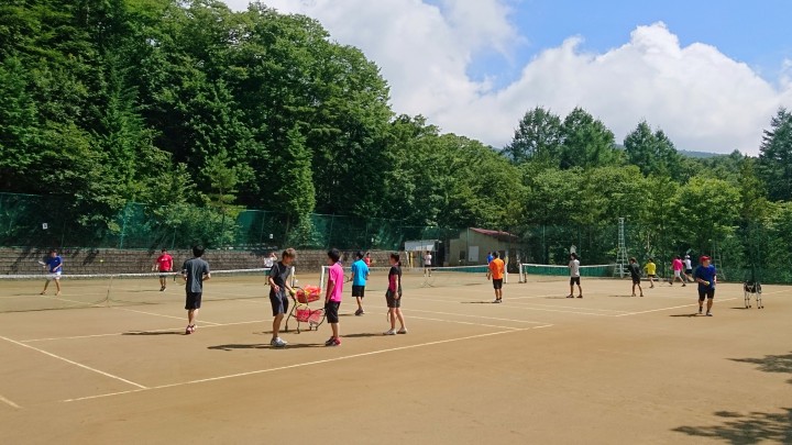 今日の最高気温は30℃、これで10日連続の真夏日となった山中湖です。暑いですが宿泊中のインパクト様はチーム戦を開催して、各コートに分かれて気合いの入った試合をしています。どのコートも熱戦でした。今朝の最低18℃、朝晩は涼しいです。19/08/11