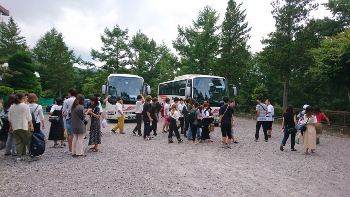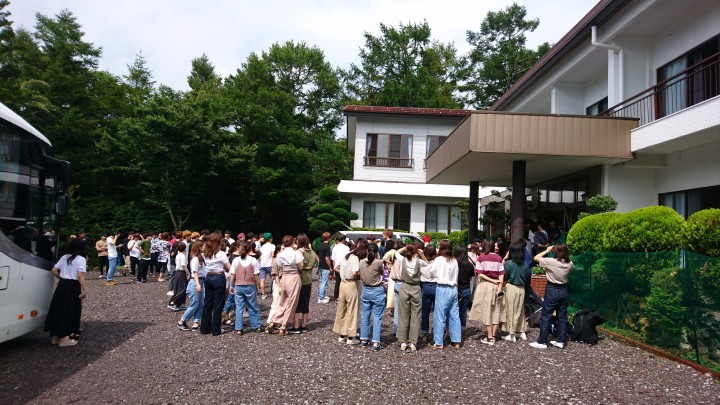 9日からお泊まりのインパクト様、夏合宿に当館をご利用いただきありがとうございました。テニスに真摯に取り組む姿が印象的でした。毎晩のミーティングも真剣そのものでした。スタッフ一同、またのお越しをお待ちしています。気を付けてお帰り下さい。今日からお越しのグリーン様、よろしくお願いします。今日の山中湖は晴れ時々曇り、最高気温は28.5℃19/08/12