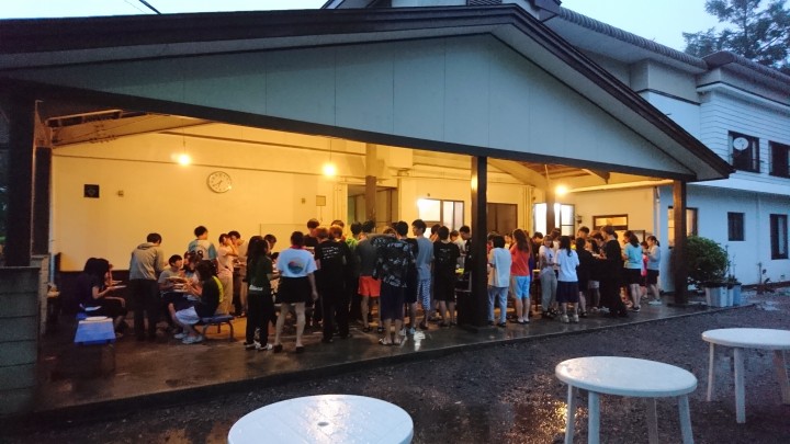 今日も日差しが強い山中湖は最高気温が31℃で真夏日が7日間続きました。宿泊中の硬式庭球部様は相変わらず、気合いの入った練習をしています。疲れ知らずで頼もしく感じます。写真は練習後のBBQです。たくさんお肉を食べてまた明日、頑張って下さいね。19/08/08