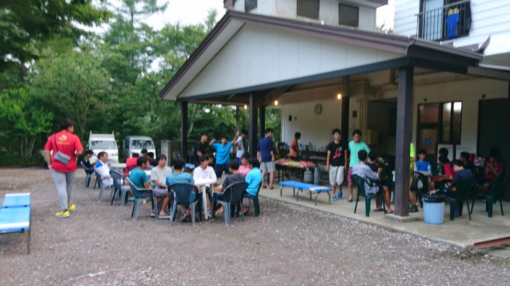 今日の山中湖は晴れ、最高気温は29.6℃。宿泊中の高校生は、強い日差しに負けないでがんばって練習中です。午後からは雨が2時間ほど降っている中でのテニスでしたが、ほてった体にはちょうどよかったかも知れませんね。写真はBBQ、この後は山中湖報湖祭で花火鑑賞、合宿の思い出作って下さいね。
