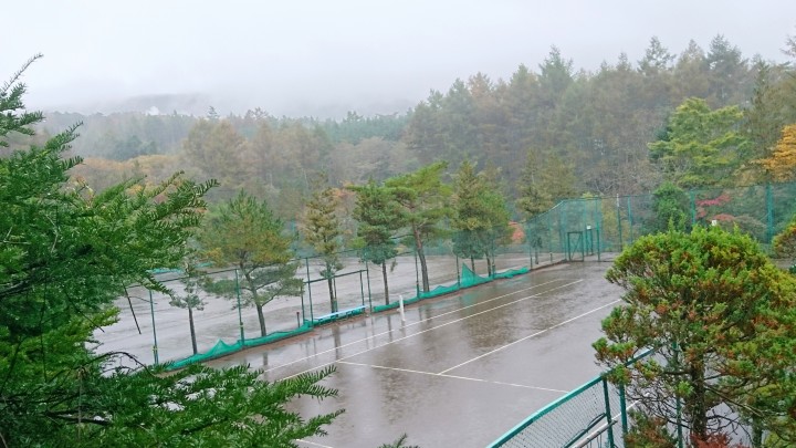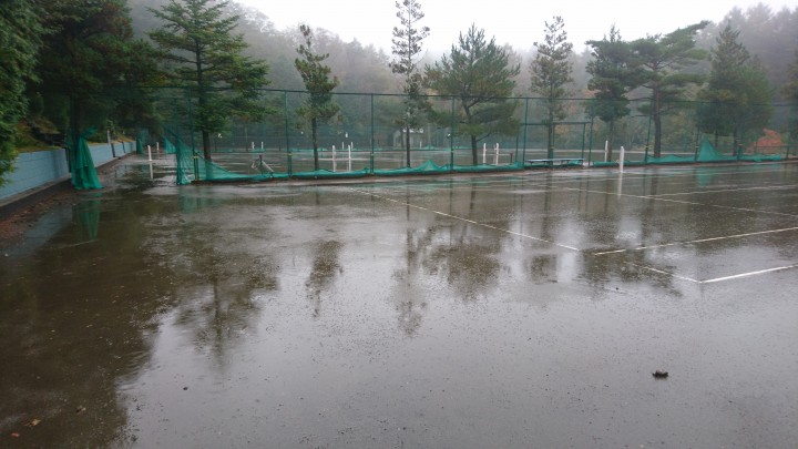 雨のテニスコート