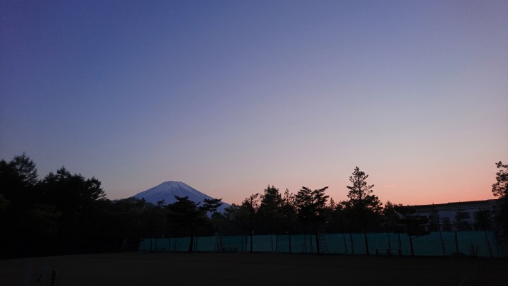 今日は朝から快晴の山中湖、最高気温は24.8℃のほぼ夏日となりました。写真は夕方6時50分、日没後の富士山は日中と違う雰囲気ですがとても趣きがあります。空のグラデーションがすごくきれいでした。今日からお越しのワールドテニスクラブ様、今年もよろしくお願いします。