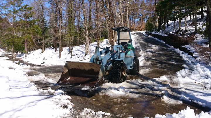 今日の山中湖は晴れ、今朝は3月中旬並の-4℃まで気温が下がり、テニスコートは雪と霜で真っ白でした。日中は最高11℃、日差しが強く雪がかなり解けました。テニスコートももう少しで雪が全て解け、乾いたらやっとローラ転圧することができます。今日からお越しのオールホワイツ様、今年もよろしくお願いします。テニスコートは先日の大雪で、未だ使用不可状態、本当に大変申し訳ありません。心苦しいですが、皆さんで楽しい1泊にしてほしいと思います。