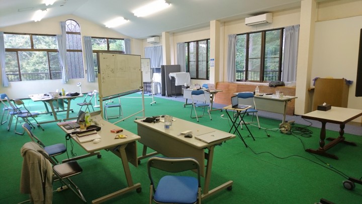 きょうからお越しのゼミナールの皆さま、当館のご利用ありがとうございます。施設の周りには他の建物が無く、森林となっていますので、静かな中でゼミを行っていただけると思います。よろしくお願いいたします。
