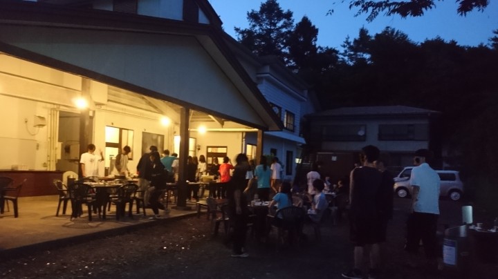 今日からお越しのテニス同好会の皆さま、今年もご利用ありがとございます。テニス以外にもたくさんイベントをご用意されていますので、楽しい夏合宿になると思います。楽しんでいってくださいね。今夜の夕食はBBQです、たくさん食べてください。