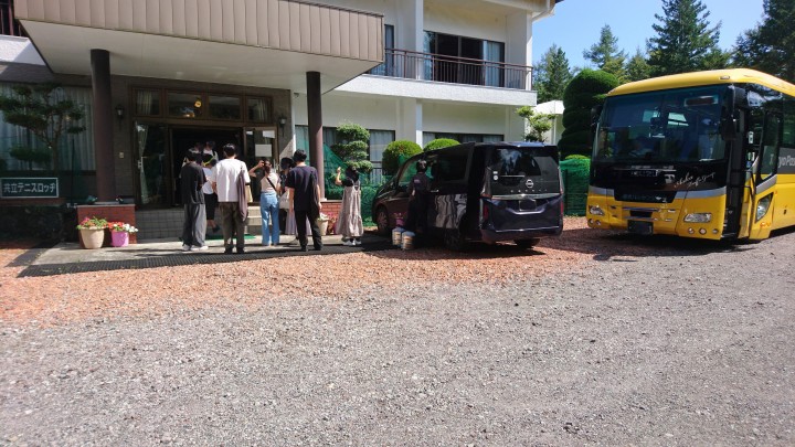 今日からお越しのテニス同好会の皆さま、今年もご利用ありがとございます。テニス以外にもたくさんイベントをご用意されていますので、楽しい夏合宿になると思います。楽しんでいってくださいね。今夜の夕食はBBQです、たくさん食べてください。24/09/05
