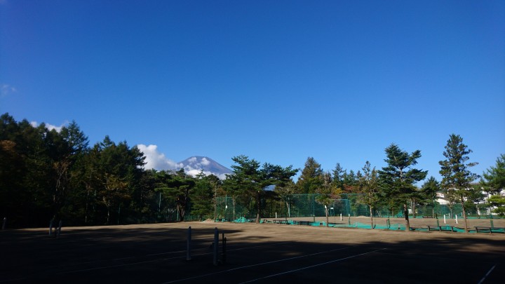 テニスコートからの富士山、青空がきれいです。