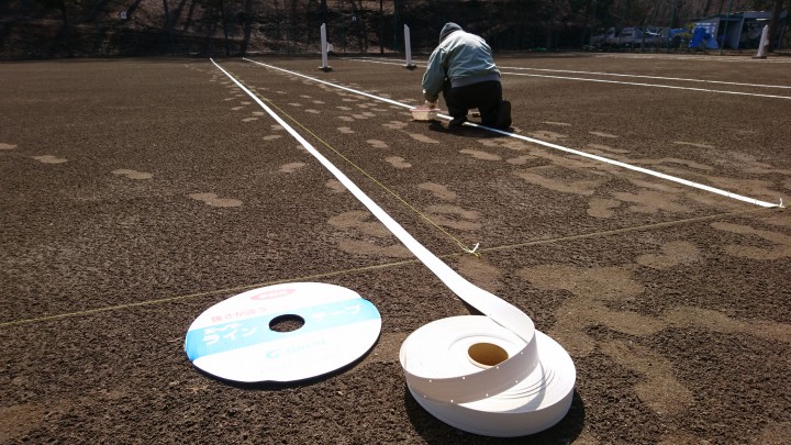 今朝の最低気温は2月中旬並みの-8.1℃、この時期にしては強烈な寒さです。テニスコートは今日も霜が降りてしまし、日差しで乾いたところしか作業できず、ラインテープ張りはあまり進みませんでした。翌朝も寒く霜が降りるようですが、明後日からは暖かくなりそうです。最高気温9℃。取り付けるラインテープは全コート、ピカピカの新品です。19/04/03