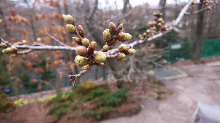 朝5時から7時、20mmの雨が降ったため今日はテニスコートには入れず、残念ながらコート作業は出来ませんでした。写真は裏庭の砕石均し作業中に撮った桜の木です。まだまだつぼみ状態です。あと2週間ほどで咲き始めると思いますが、元気に咲いてほしいですね。今日の山中湖は晴れ時々小雨、今朝の最低−2℃、最高気温は11℃でした。