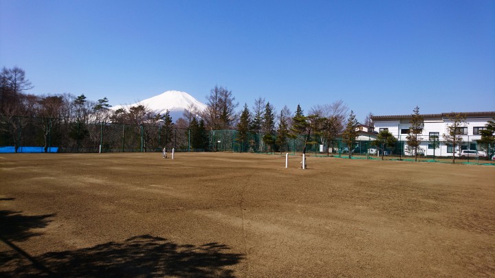 今日の最高気温17.3℃、山中湖は5月上旬並みの陽気となりポカポカの1日でした。今朝の最低は−3℃。写真は午前11時のテニスコートです。春のテニスシーズンに向けて、準備しています。夜、雨が降り出しました。