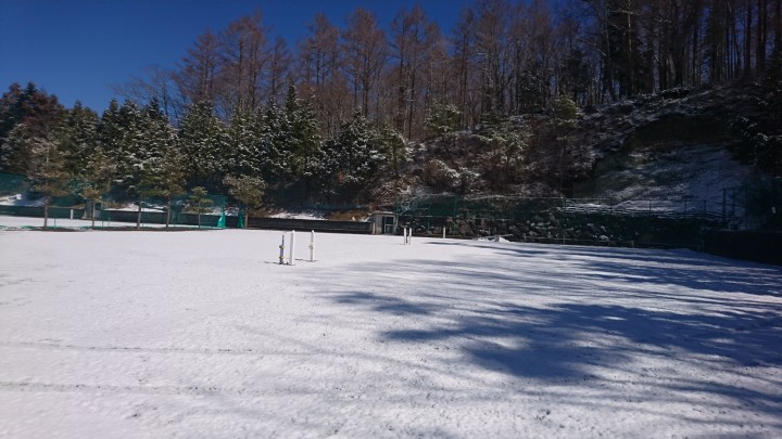 真っ白なテニスコート、午後には解けて雪は無くなりました。
