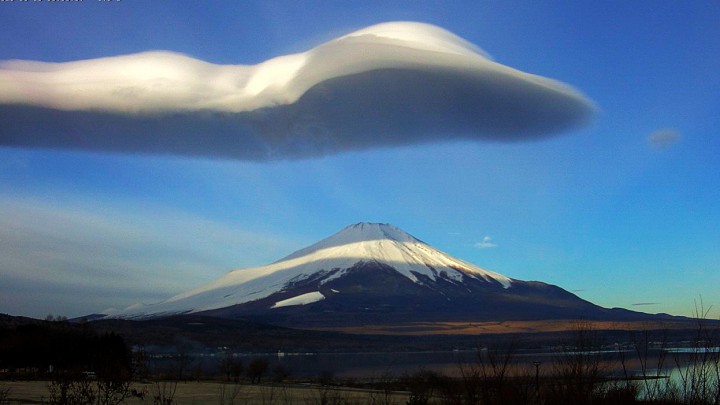 山中湖に、面白い形のつるし雲が現れました。