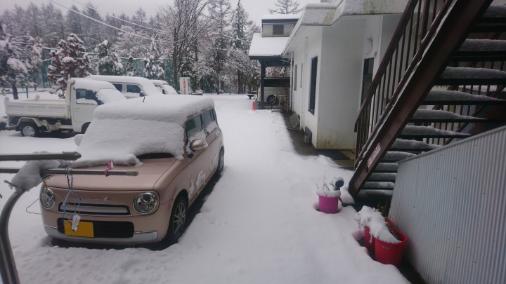 山中湖は未明まで雪、積雪12cmでした。