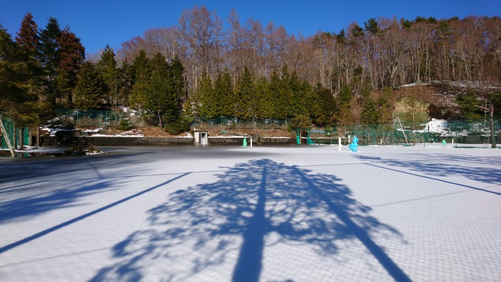 山中湖の雪は日中の陽気でだいぶ無くなっていますが、標高の高い当館ではまだまだ雪が残った状態です。雪の残ったテニスコートに木の影がきれいに映っていたので、今日の写真にしてみました。今日の山中湖は晴れ、今朝の最低は―4℃、霜が降りました。日中は4月の陽気で最高13℃19/03/12