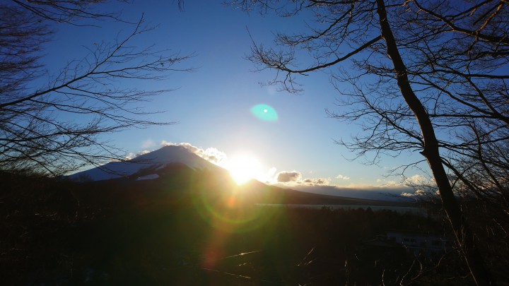 写真は共立テニスロッヂ展望台から、富士山に沈む太陽を撮りました。時間は午後5時23分。山頂からだいぶ外れていますので、日没時間もかなり伸びました。1か月前は山頂に沈むこともあって大体1時間前の日没でした。陽がとても長くなりました。今日の山中湖は晴れ、午後からは強風、今朝の最低は―4℃で霜が降りました。最高11℃でしたが、夕方は強風で寒かったです。