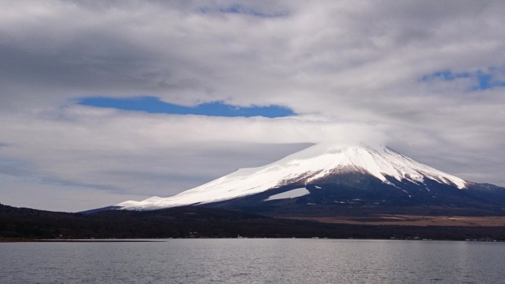 今日は霜が降りなかった山中湖、いよいよ春に向かっています。最高気温−2℃、最低気温13℃はとも4月上旬並みでした。朝9時40分、山中湖平野の浜から富士山を撮りました。雲が覆いかぶさっていて山頂の雪にできたコントラストがきれいでした。