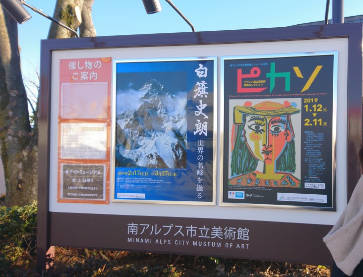 山梨県南アルプス市立美術館で、1月12日から2月11日までピカソ展が開催されています。たくさんのピカソ版画が展示されています。入場料500円の低価格ですので、お近くに行った際はぜひどうぞ。今日は1時間40分かけて山中湖まで見に行ってきました。遠かったですが、とても満足でした。今日の山中湖は晴れ、今朝の最低気温は−4℃、最高4℃19/01/29