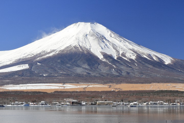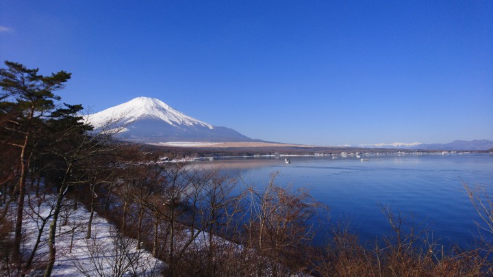 ポカポカで季節外れの山中湖は、富士山がきれいです。