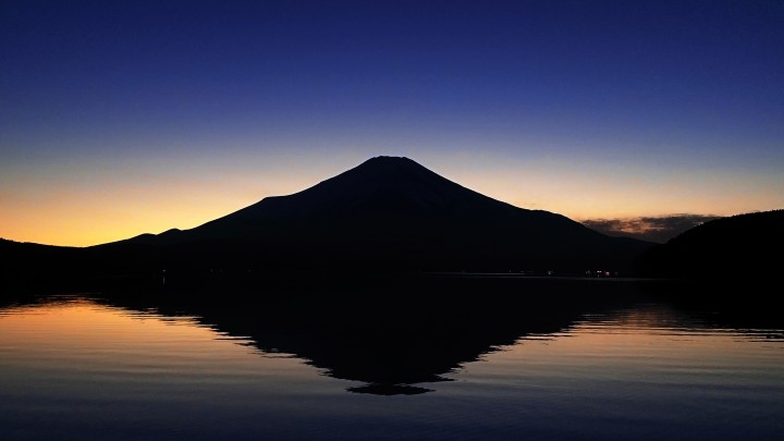 今日もすばらしいシルエットの富士山、夕暮れ時の山中湖は最高です。時間によってそのグラデーションが刻一刻と変化していくので、夢中でシャッターを押しています。時間は午後5時25分、周りにはカメラマンが二人だけ。この時間帯の富士山は人気がないのか不思議でした。寒いですが、この時間帯の富士山は結構好きです。今日の山中湖は晴れ、最低−9℃、最高6℃