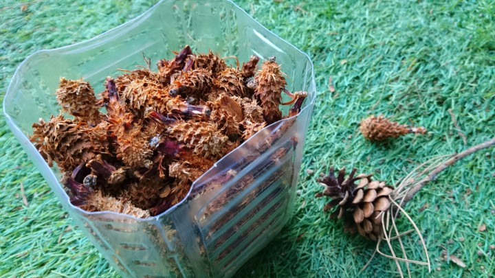 今日の山中湖は朝の最低気温−8℃でしたが、日中は4月上旬並みの気温となり、最高気温は13.1℃まで上がりました。写真は1/18に紹介した、テニスコートにたくさん落ちていた松ぼっくりエビフライです。リスが松ぼっくりを食べたカス?です。小さいですが、たくさんあったので、カップがいっぱいになりました。