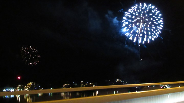 冬花火はきれいです。空気は冷たいですが、空気がとても澄んでいるので、花火が本当に美しく見えます。写真は夜8時過ぎの河口湖大橋、予期せぬ花火でとてもラッキーな出来事でした。この後、付近まで行って花火を鑑賞してきました。動画でも撮りましたので、よかったら、ツイッターで見てくださいね。今日の山中湖は晴れ、今朝の最低気温は―9℃、日中の最高は4℃でした。