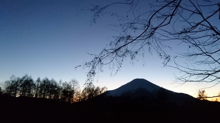 今日も強烈寒波の影響で、今朝の最低気温は−11.8℃、寒さで朝太陽が出ても昼になるまで霜は解けませんでした。日中は快晴でしたが最高は2℃、日向にいても寒い気温です。写真は午後2時30分、テニスコートからの富士山です。あと1時間10分で日没になるとは思えないほど空が真っ青でした。18/12/30