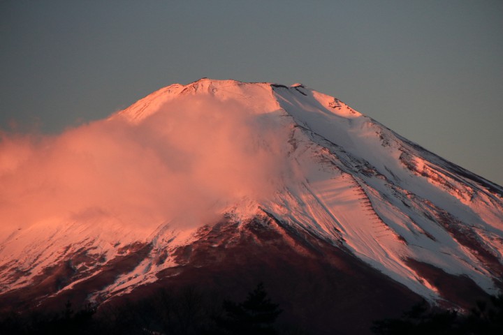 今日も山中湖はよく晴れて朝から富士山がくっきり見えました。写真はテニスコートから朝6時58分に撮った富士山です。うっすらピンクの紅富士です。ピンクの時間は6時55分の前後5分位の短い時間だけですので、貴重な時間帯です。今朝の最低は-9℃、寒いですが撮るのに夢中で寒さを忘れます。最高5℃19/01/02