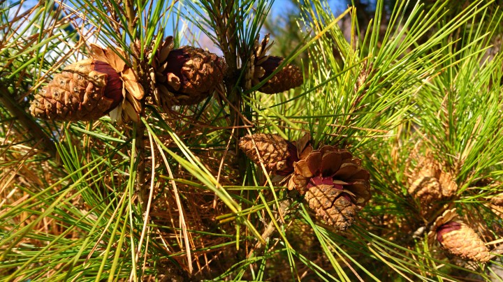 今日の山中湖は午前中青空が広がって温かかったのですが、次第に雲が出てきて午後からは曇って寒くなってきました。、最高気温11℃。今朝は霜がなく最低は1℃でした。写真はテニスコートにある松ぼっくり。上を見上げたら、松ぼっくりが開き始めていました。完全に開くと結構な大きさで、木の下によく落ちています。100均でも売っていますよね。18/11/29