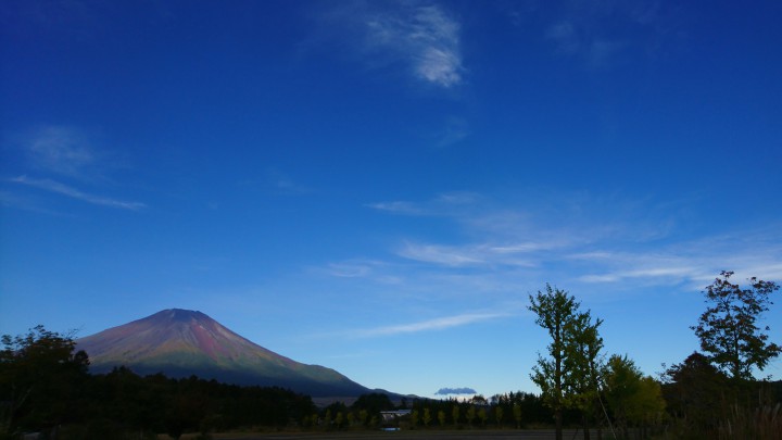 今日の山中湖はは朝からいい天気で、日中は26.7℃まで気温が上がりました。ニュースでは30℃越えなどの地点もあり、10月の最高気温を更新したところもあるようです。今朝の最低は17℃。温かくなったり寒くなったりで、体調管理には気を付けて風邪を引かないようにしたいですね。写真は12時、当館テニスコートから富士山です。雲に覆われて全く姿が見えませんでしたが、真っ青な青空がすごく気持ちよかったです。