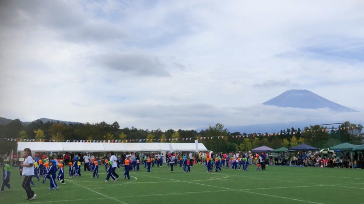 本日、「きらら」で山中湖村民体育祭が行われました。小中学校の生徒はもちろん、保育園生やお年寄りまで、多くの人が参加しました。お弁当持参の父兄も参加して、先日の台風を忘れて、楽しい1日を過ごしました。子どもはかわいいです。今日の山中湖は晴れ、最高気温20℃、今朝の最低8℃18/10/03