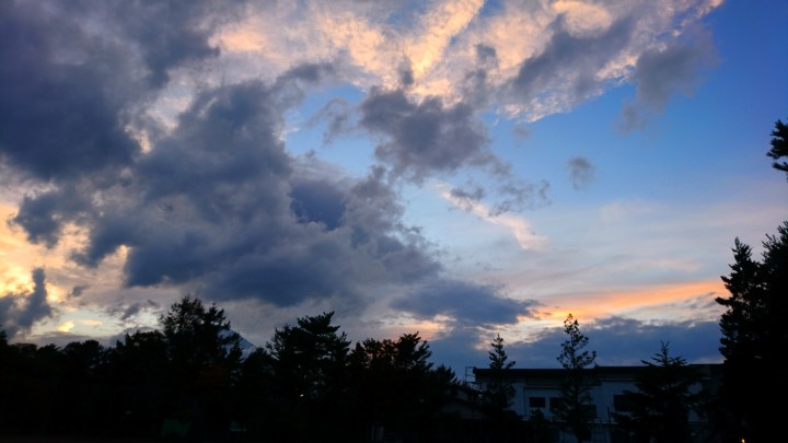 今日の山中湖は晴れ時々曇り、最高気温は21℃、今朝の最低は12℃。最近、少しずつ秋に向かっていく気配がします。写真は午後5時15分、雲がなければ綺麗な夕日がテニスコートから見れたのですが、雲がかかってしましました。山頂の雪が確認できるかと思ったのですが、残念でした。また明日ですね。