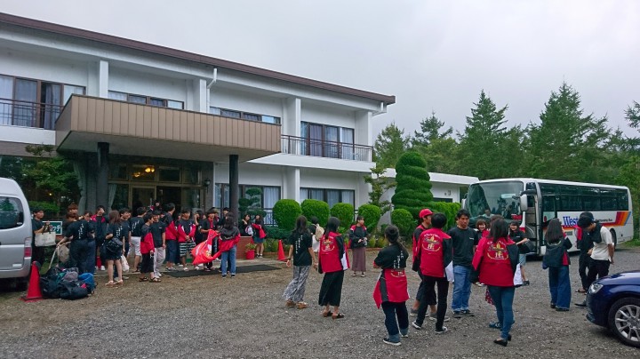 28日からお泊まりのグリークラブ合唱団の皆さん、4泊山中湖合宿に当館をご利用いただきありがとうございました。早朝の点呼・体操から始まり、夜の練習まで、いつも団体行動で仲がとてもよく、礼儀正しい皆さんでした。そして、どこにいても心地よい声が聞こえてきました。最後の挨拶時、皆さんから贈られた校歌合唱には驚きました。すごすぎて鳥肌が立ちました。スタッフ一同、またのご利用をお待ちしています。気を付けてお帰り下さいね。今日の山中湖は曇り、最高気温は26℃最低19℃18/09/01