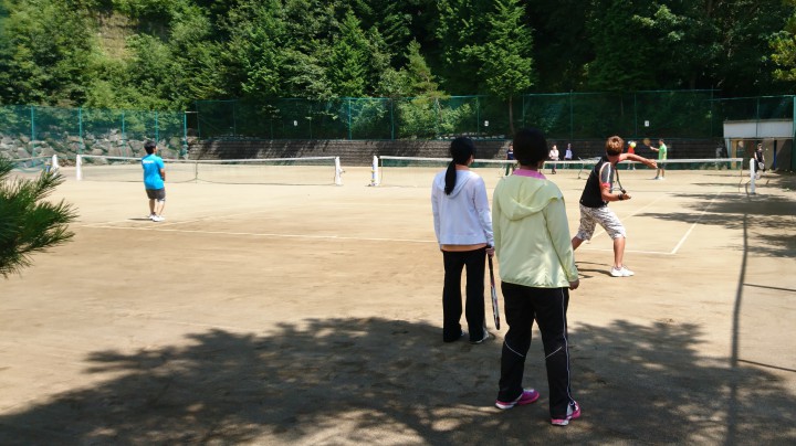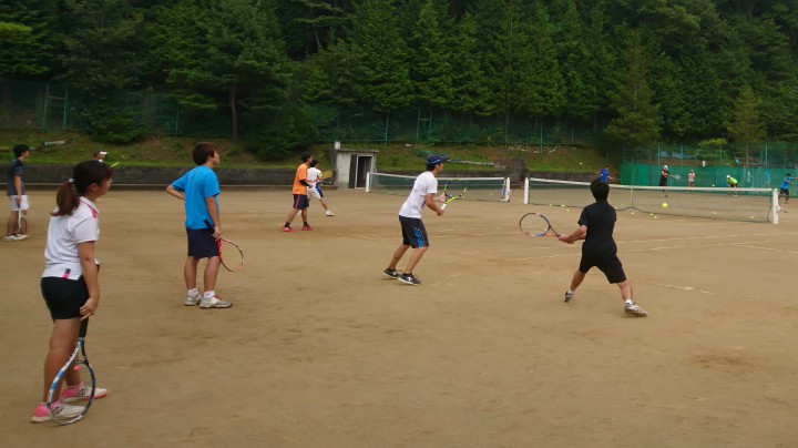 早朝から練習に励んでいる中高生の皆さんは、各コートに分かれて球出し練習など元気に練習しています。軟式テニスの心地よい音が響き渡っています。山中湖は今日も晴れ、各地で37℃以上の猛暑の中、こちらの最高気温は30.9℃で少しは過ごしやすい環境だと思います。先生たちが見守る中で生徒たちは頑張っています。