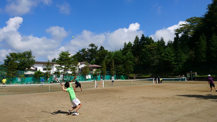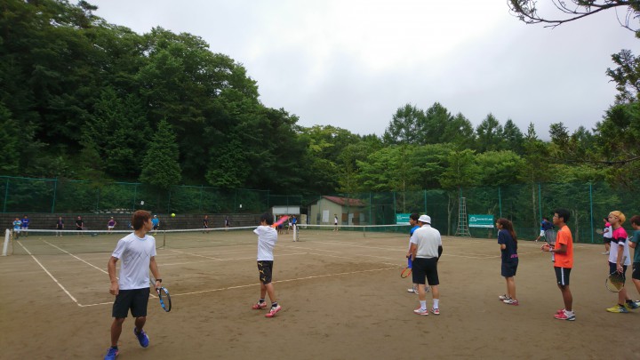 今日の山中湖は午前晴れ、最高気温は28.7℃、今朝の最低20℃。午後からは大気が不安定な状態で雨が降ったりしましたが、1日テニスが出来ました。宿泊中のウィンブルドン様は、試合を楽しんでいました。どのコートも気合い入っていました。明日は最終日、たくさん楽しんで下さいね。