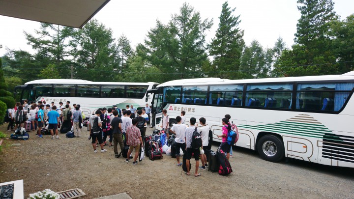 30日からお泊まりの高校生の皆さん、3泊山中湖合宿に当館をご利用頂きありがとうございました。施設を丁寧に使ってくれました。スタッフ一同、またのお越しをお待ちしています。試合頑張って下さいね。今日からお泊まりの皆さん、4泊合宿よろしくお願いします。テニスコートが宿の隣にありますので、コートまでの移動はとても楽で、突然の雨でも安心です。今日の山中湖は晴れ、最高31.3℃