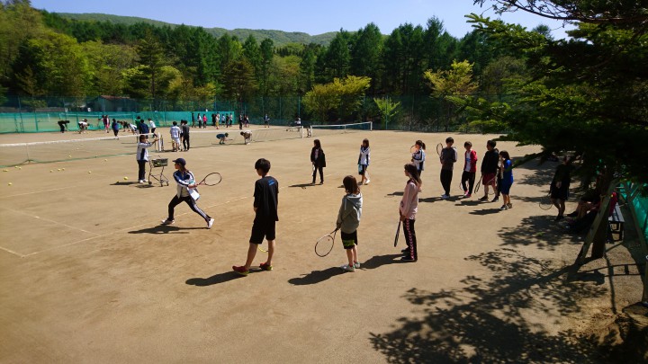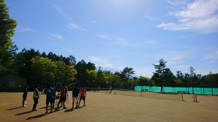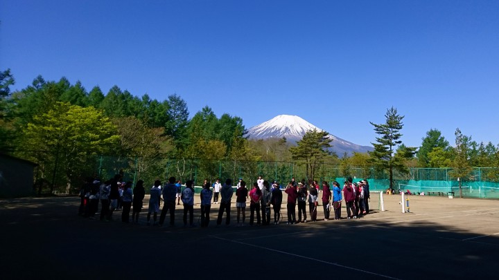 昨日からお泊まりのアドバンテージ様は、青空の下で各班に別れて、元気よくテニスに励んでいました。よく走り、大きなかけ声。テニスに取り組む雰囲気はすばらしいものでした。みんなで頑張って下さい。今日の山中湖は晴れ、最高18℃、今朝の最低9℃。夜は冷え込んできています。18/05/04