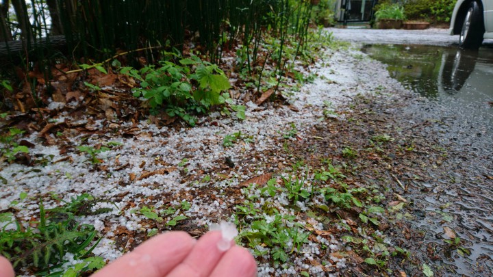 突然の雨かと思ったら「ひょう」が降ってきました。