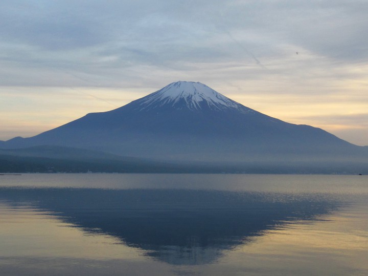 今朝の山中湖は最低気温が1.2℃とかなり冷え込みました。日中はよく晴れて最高気温は18℃、過ごしやすい1日でした。写真は午後6時25分、山中湖平野の浜からの富士山です。1週間前と比べて明からに山頂の雪が小さくなりました。今年は4月5月の気温が初夏のようでしたので一気に解けたのだと思います。見納めも近いかもです。