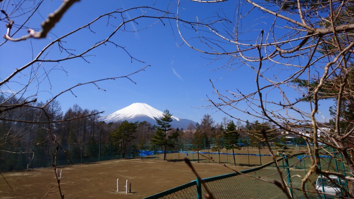 今日の山中湖は晴れ、1日中いい天気でした。今朝の最低気温は-2.4℃、最高は12.1℃。写真は11時30分、テニスコート脇から撮った富士山です。テニスコートの掃除中でしたが、とても綺麗で作業が気持ちよく出来ました。18/03/18