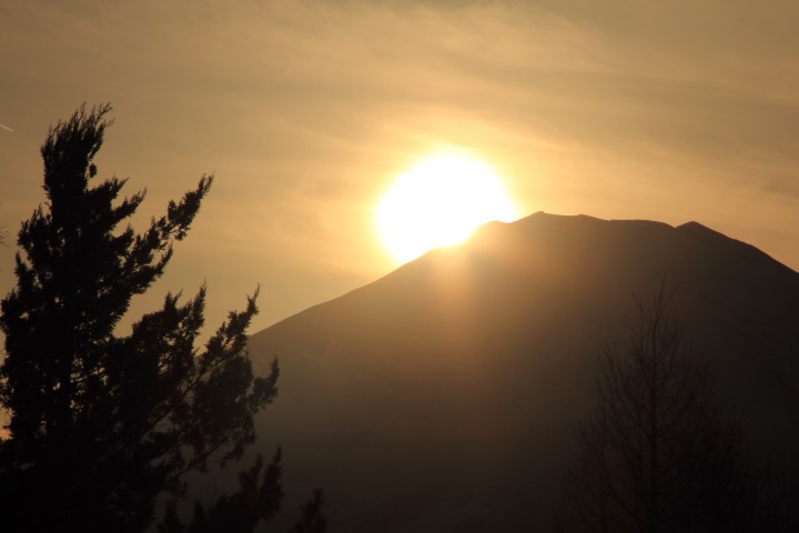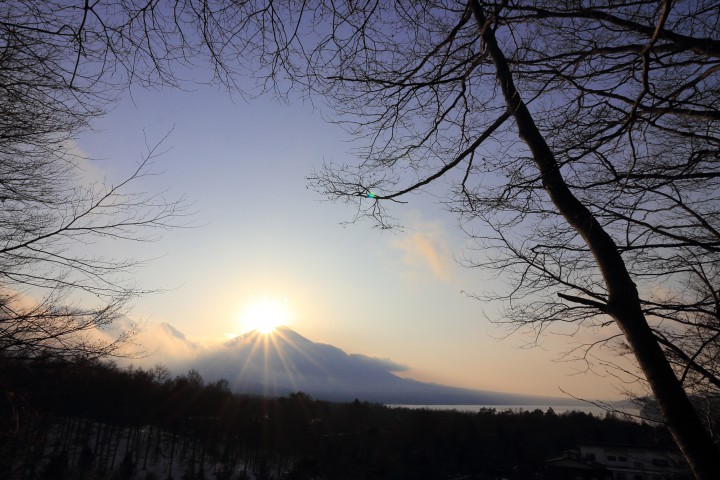 今日の山中湖は晴れ、今朝の最低気温は-6.1℃、最高気温は6℃、共に3月上旬並で気温は春に向かっています。写真は午後4時40分、当館展望台からのダイヤモンド富士です。直前まで大きな雲が掛かっていましたが、運良く山頂が出来てきました。宿泊中の宇宙航空研究会様は、山中湖畔からダイヤモンド富士を鑑賞し、夜は星空の天体観測を堪能していました。