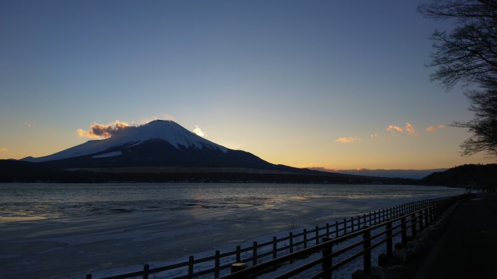 今日の山中湖は午前雪がぱらつき降雪2cm、午後からは次第に晴れてきて夕方には写真のように青空になりました。写真は午後5時、ダイヤモンド富士が綺麗だったと思いますが、残念ながらその時間には間に合いませんでした。次回、がんばって撮りたいと思います。今朝の最低気温は-8℃、最高気温は2℃。夜は更に気温が下がっていて、午後10時で-12℃となっています。明日の朝は冷え込みそうです。