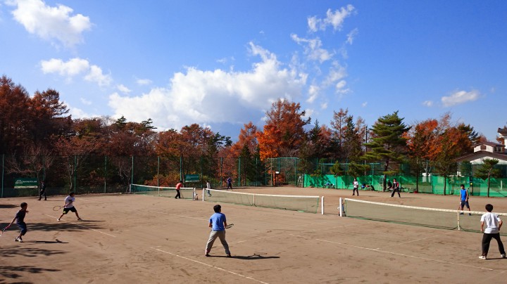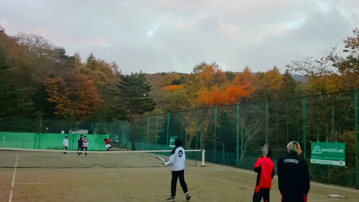 今日の山中湖は晴れのち曇り、今朝の最低気温は11月下旬並で、今季最低の-1.8℃でした。日中の最高は12℃。台風22号が去ってから一気に寒くなって、山中湖の紅葉も今が見頃になりました。今日からお越しのリンドバーグ様、今年もよろしくお願いします。写真は午後4時30分、日没後の寒い中でのテニスも気合いが入っていました。