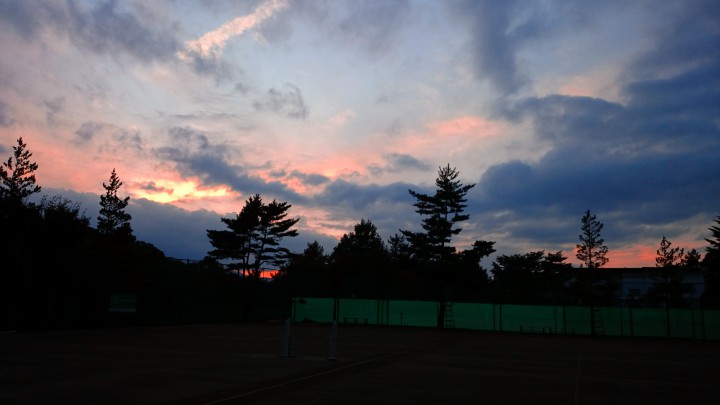 テニスコートからの夕焼け